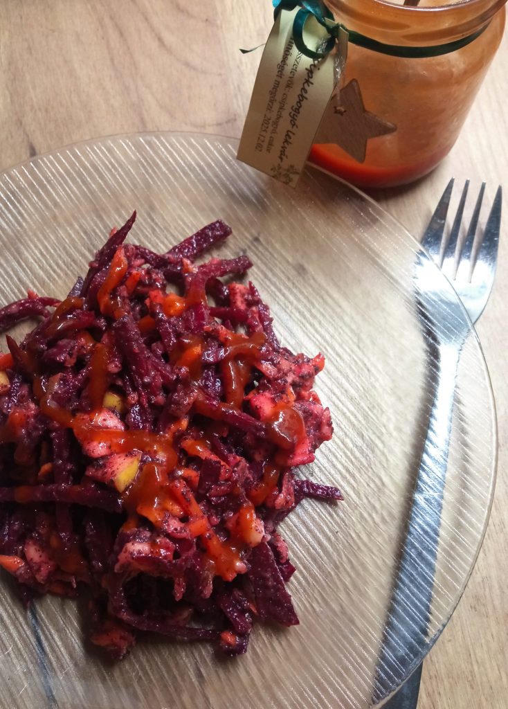 Nyers vegán recept: hecsedli lekváros mákos-almás-répás-cékla mix